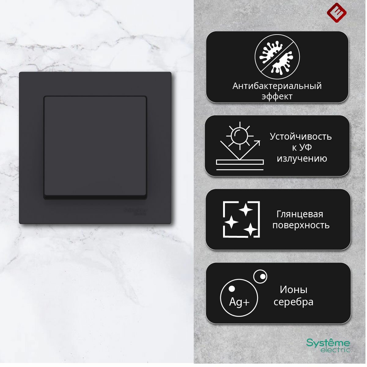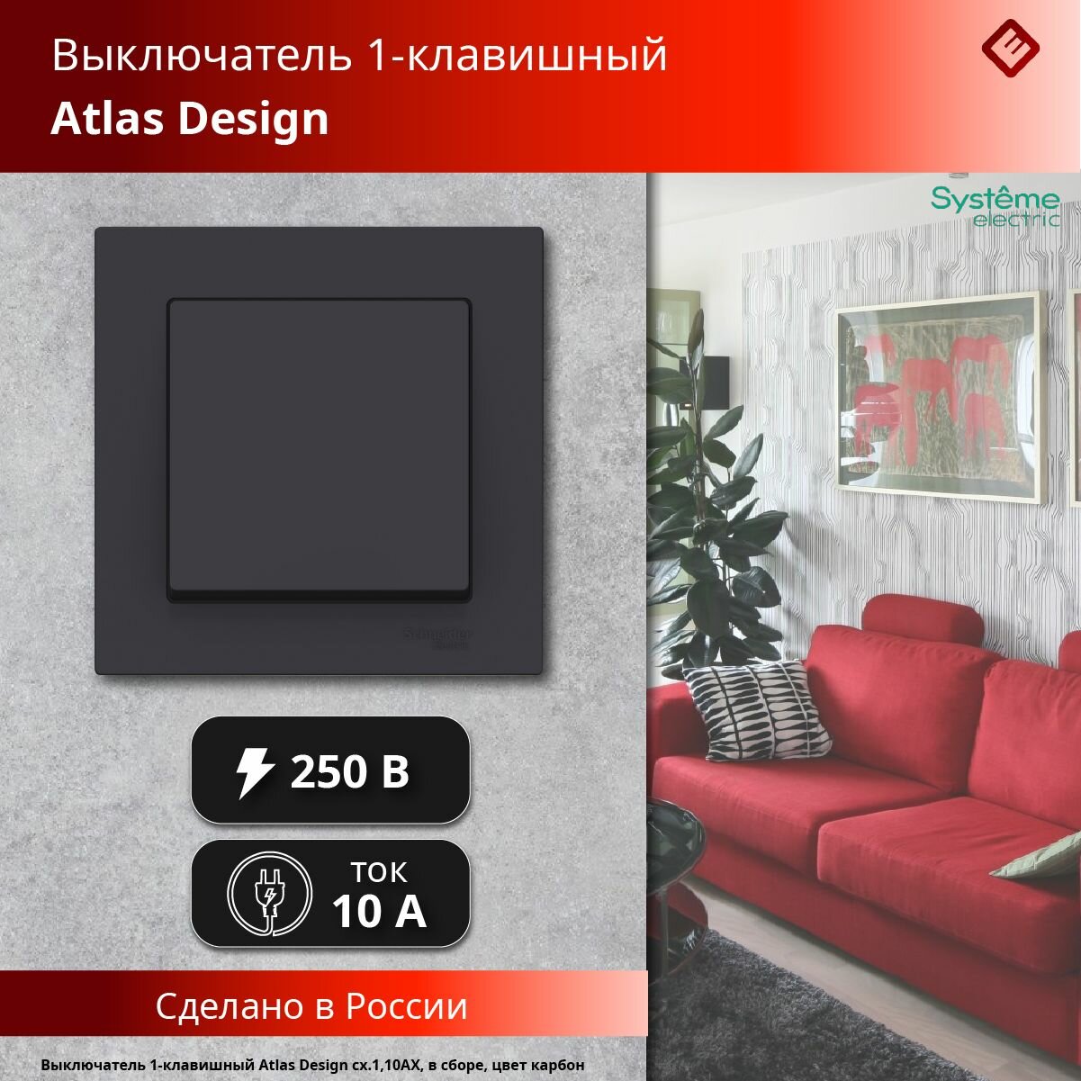Купить Schneider Electric AtlasDesign Выключатель одноклавишный Карбон сх.1, 10АХ, в сборе