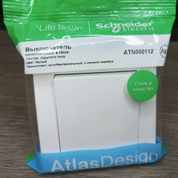 Одноклавишный выключатель цвета Schneider Electric AtlasDesign сх.1, 10АХ, в сборе (комплект 10шт)