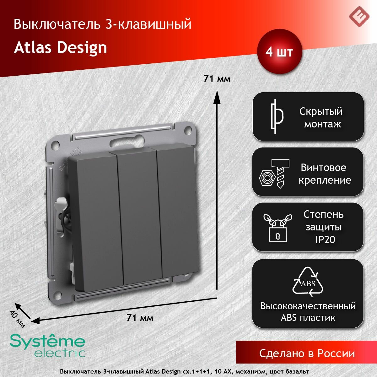 Купить Выключатель трехклавишный (Базальт), Systeme Electric AtlasDesign (Комплект 4шт)