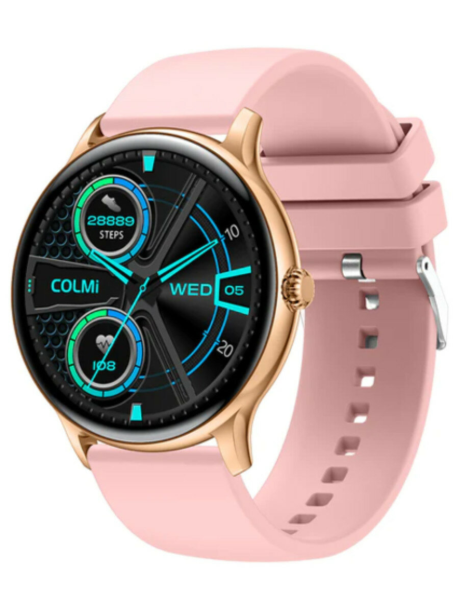 Смарт часы Colmi i20 Gold Frame Pink Silicone Strap, наручные круглые, с Bluetooth, HD-Экран, металлический корпус, водонепроницаемые золотые с розовым силиконовым ремешком