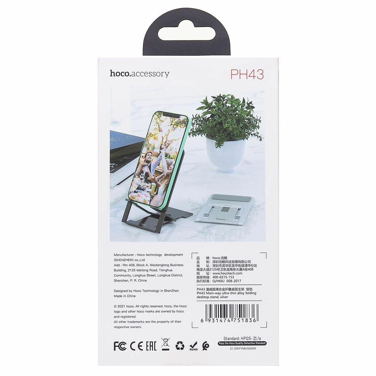 Держатель настольный HOCO, PH43, Main-way, для телефона, пластик, силикон, алюминий, цвет: серебряный