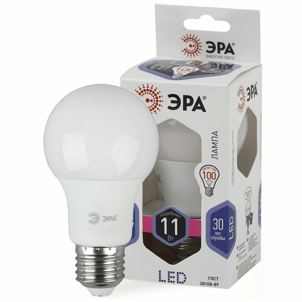 Типы/Лампочки/Светодиодные ЭРА Лампа светодиодная ЭРА E27 11W 6000K матовая LED A60-11W-860-E27 Б0031394