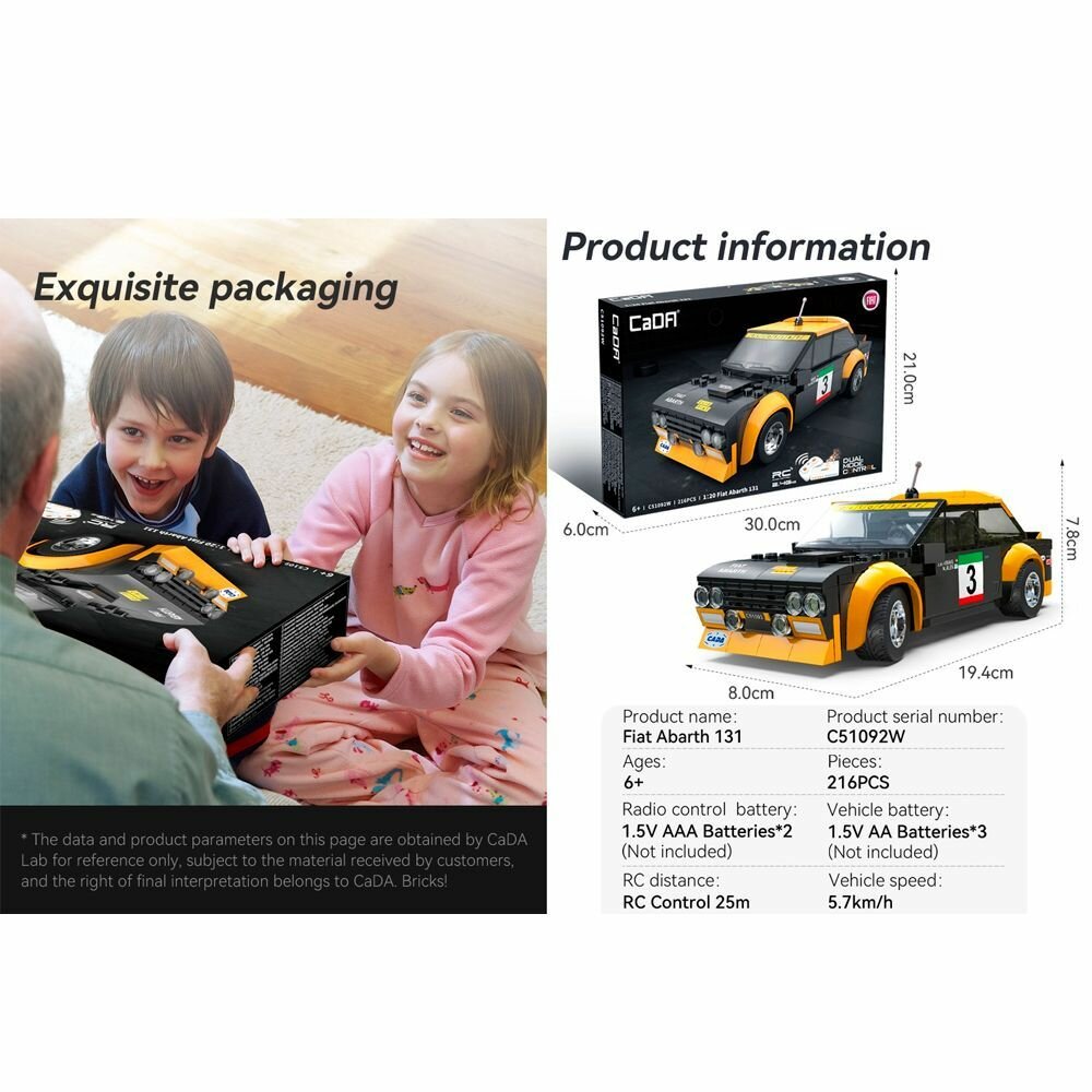 СохранитьРадиоуправляемый конструктор CaDA спортивная машинка Fiat Abarth 131 1/24 (216 деталей) - C51092W интересное: