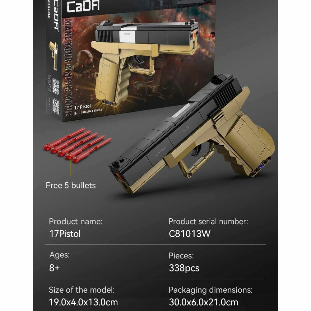 Купить Конструктор CaDA пистолет 17 Pistol (338 деталей) - C81013W