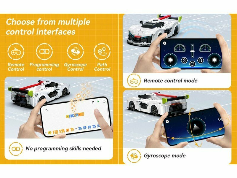 Радиоуправляемый конструктор CaDa MASTER Споркар italian Super Car желтый 1/18 3187 деталей C61057W 14+