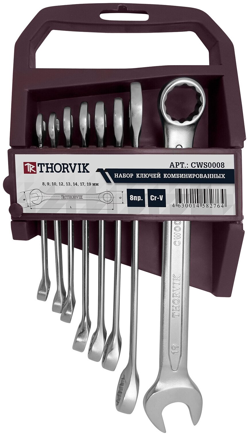 Набор ключей комбинированных на пластиковом держателе 8-19 мм, 8 предметов Thorvik CWS0008