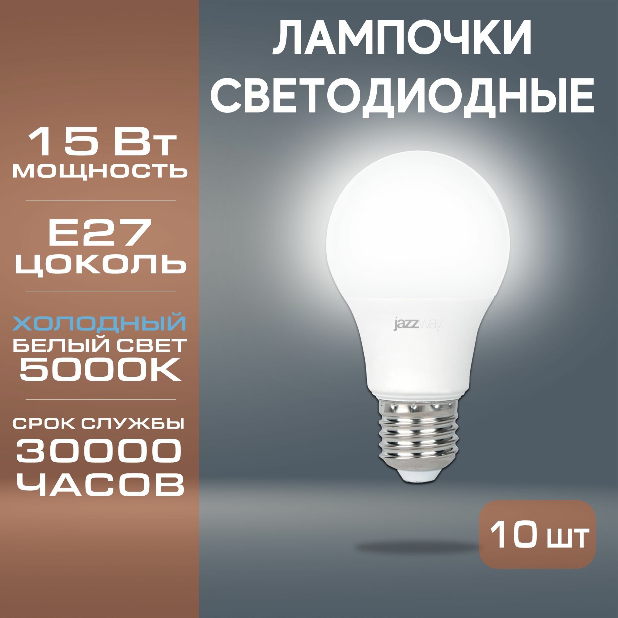 Набор из 10 светодиодных ламп JAZZway PLED-SP A60 15w E27 5000K интересное: