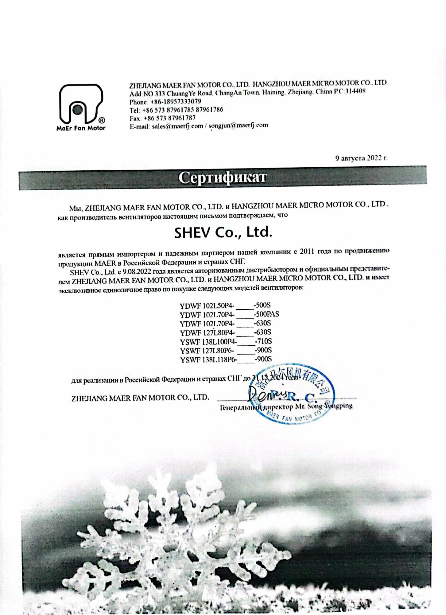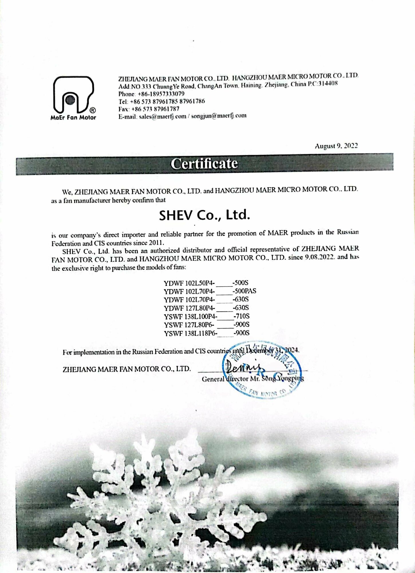 Вентилятор YDWF102L70P4-750Н-630 S MAER + плата