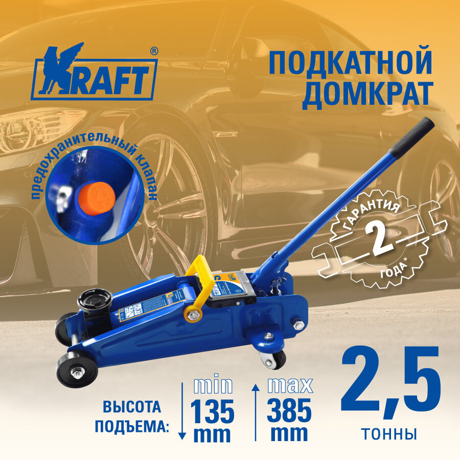 KRAFT KT 820002 Домкрат подкатной 2.5 т KRAFT 135 - 385 мм