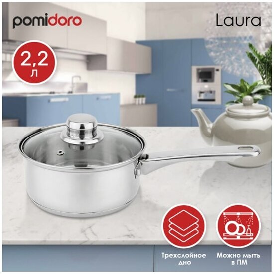 Ковш Pomi D'oro с крышкой -Laura 18см, 2,2л. P615371 интересное: