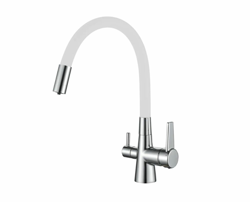 Смеситель для кухни с гибким изливом и с подключением фильтра питьевой воды, белый/хром