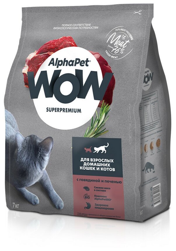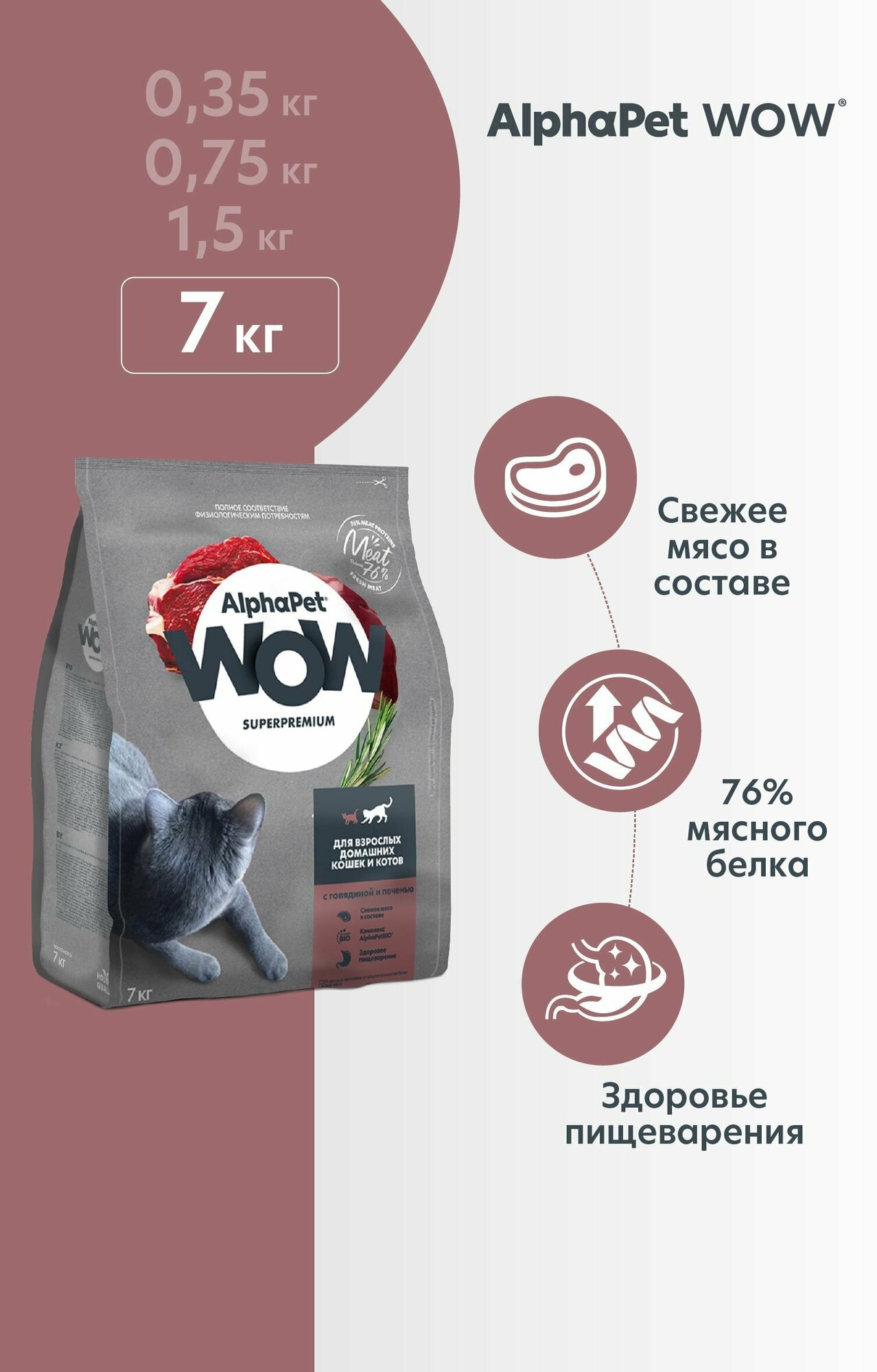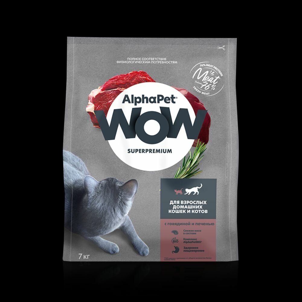 Сухой корм Alphapet Superpremium Wow для взрослых домашних кошек с говядиной и печенью, 7 кг
