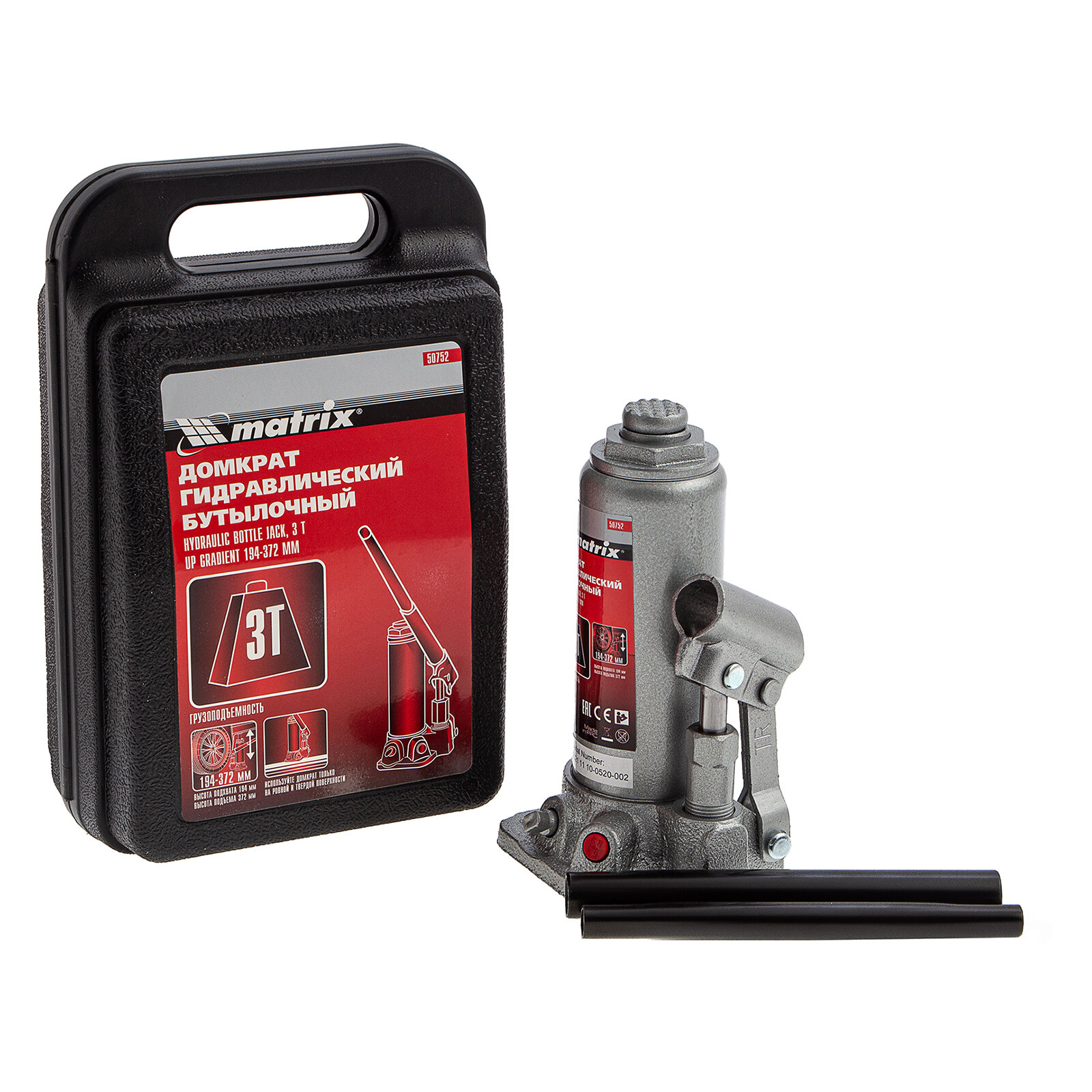 Купить Домкрат Гидравлический Бутылочный, 3 Т, Высота Подъема 194-372 Мм, В Пластиковый Кейсе Matrix Master Matrix 50752 Matrix арт....