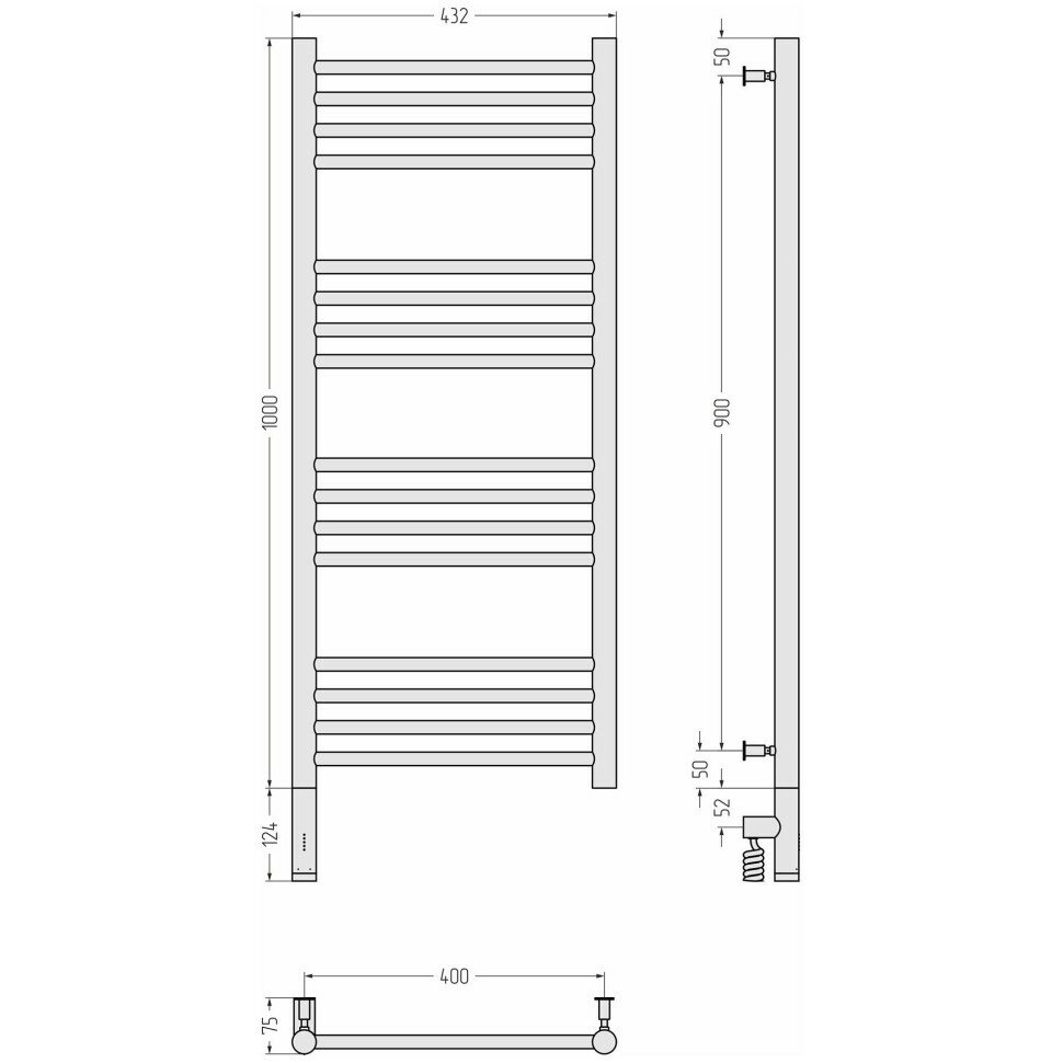 Полотенцесушитель электрический Сунержа 00-5804-1040 Богема 3.0 Полотенцесушитель электрический РЭБ, прямая, 1000х400 мм/ МЭМ левый, без покрытия