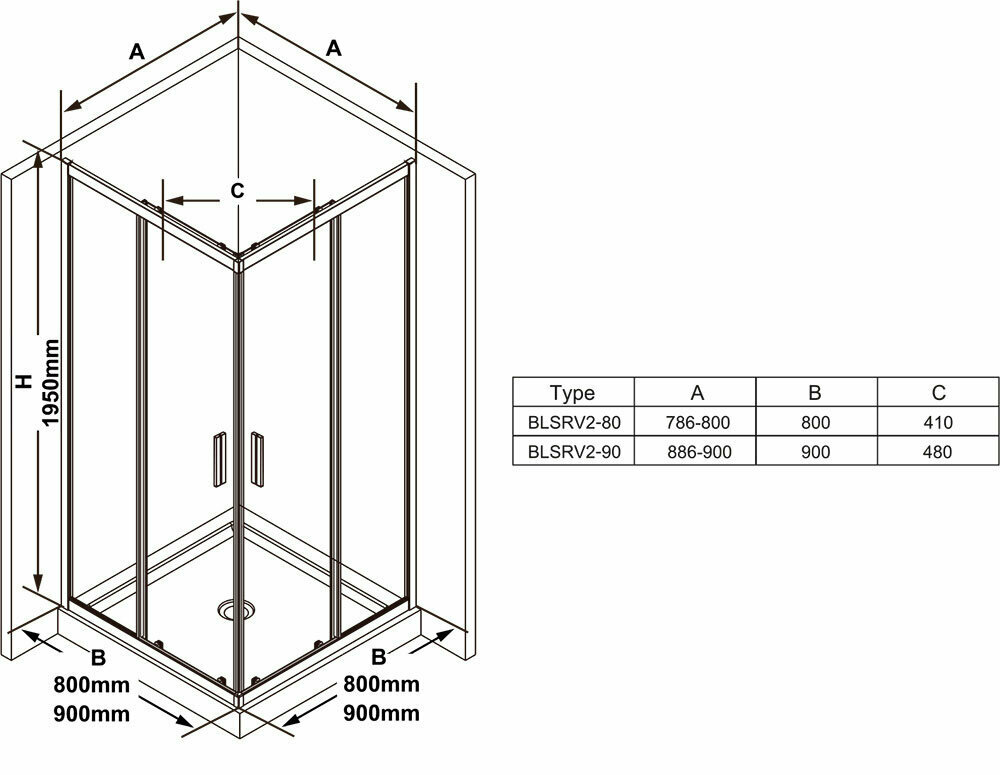 Душевой уголок 90х90 см Ravak Blix Slim BLSCP4 X1LM70300Z1 прозрачное