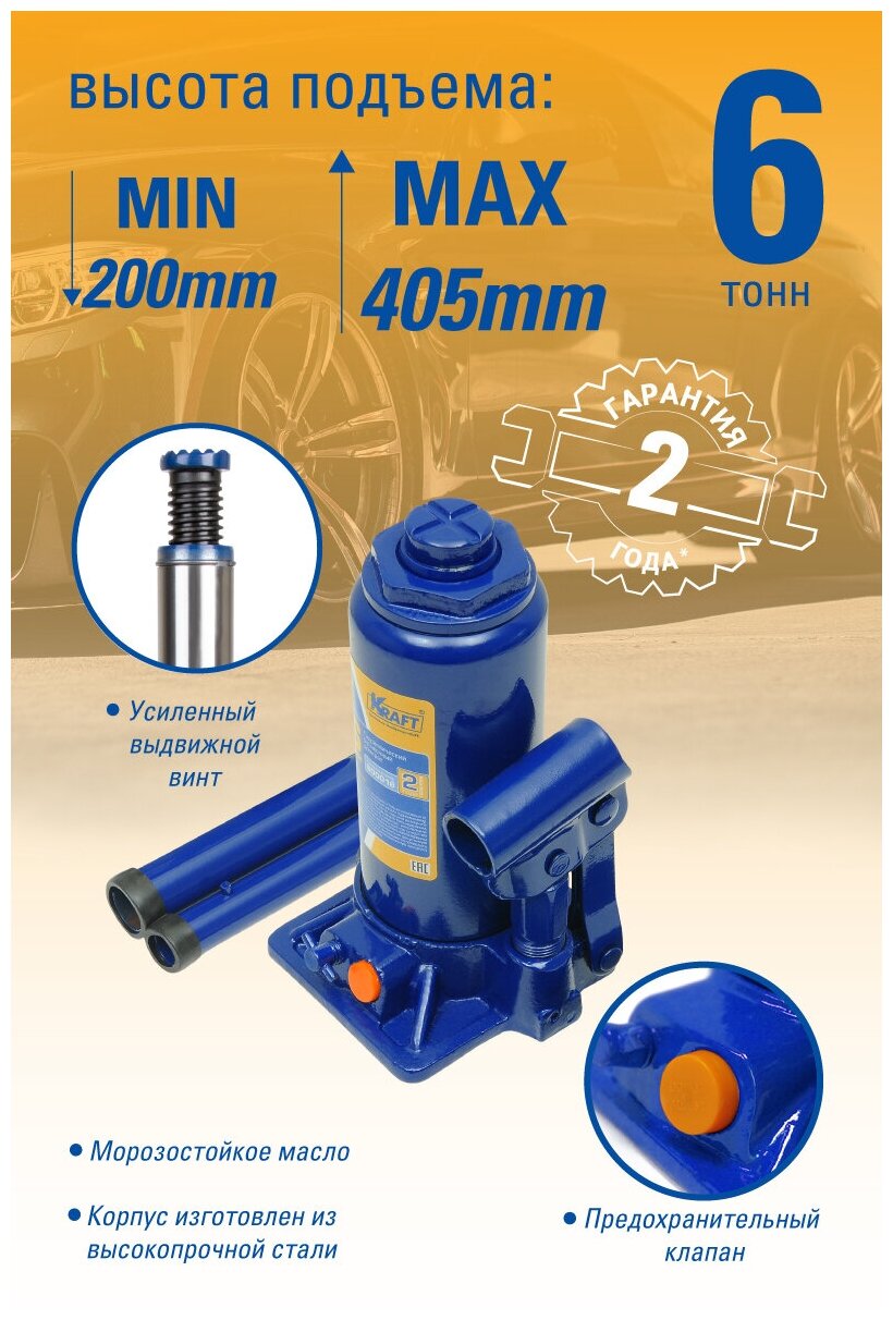 Домкрат бутылочный Kraft KT 800016 6 т 200-405 мм