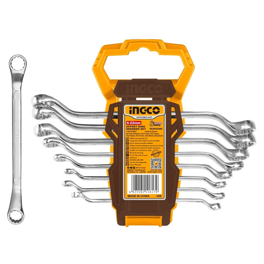Набор ключей накидных INGCO HKSPA3088 INDUSTRIAL, 8шт., 6-22мм, на подвесе