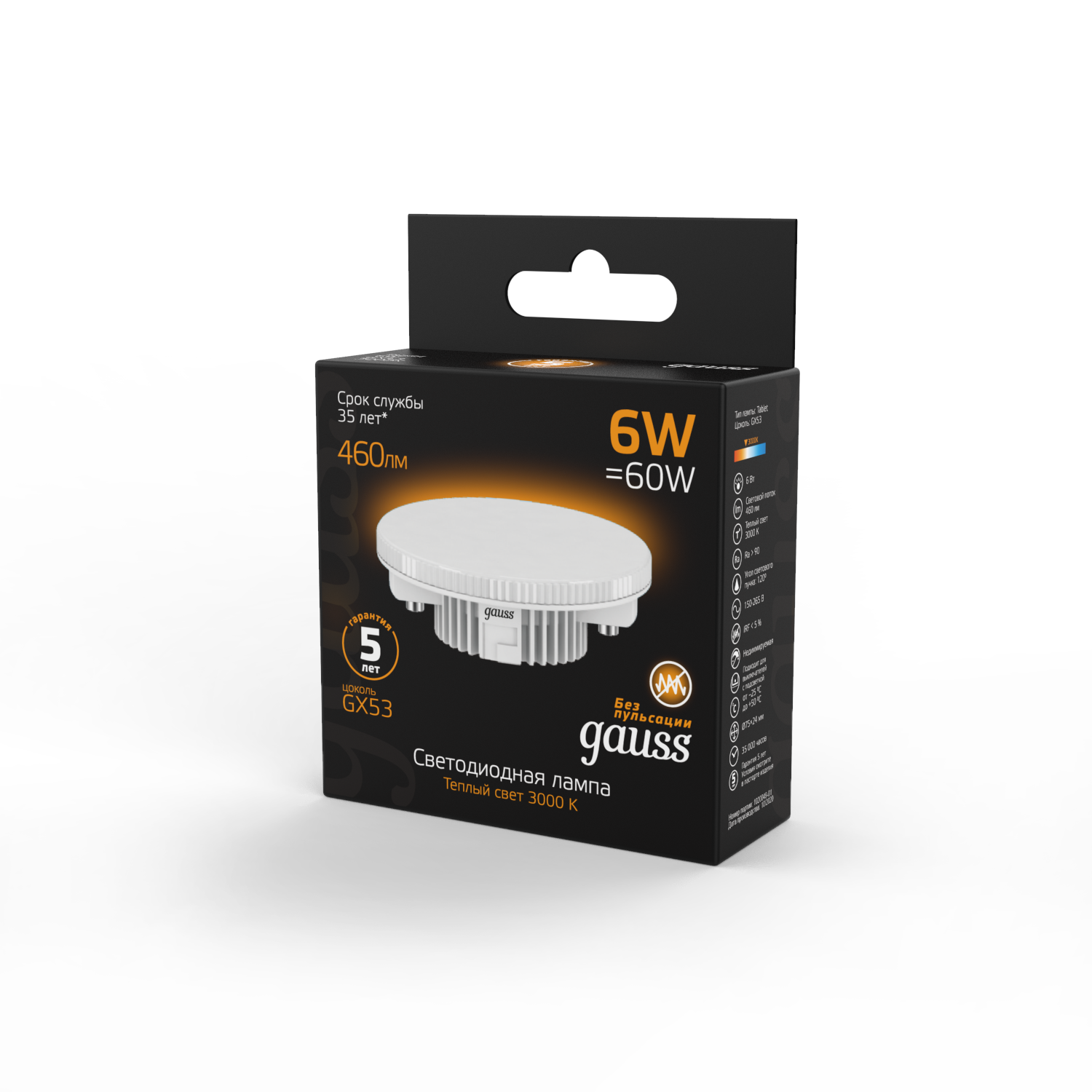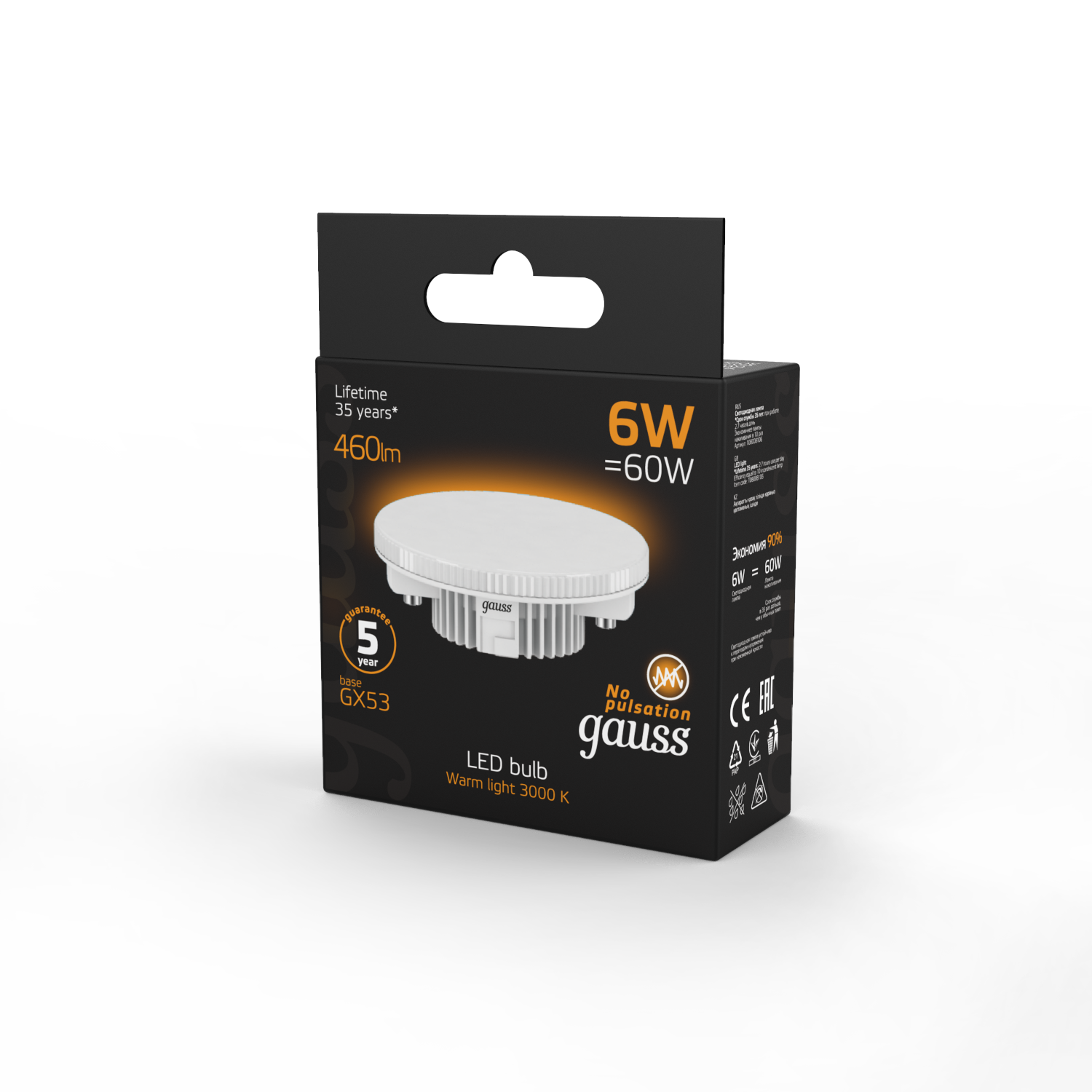 Лампочка светодиодная Gauss 6В эквивалент 60В 3000K 460Лм GX53 108008106(комплект из 3 шт.)