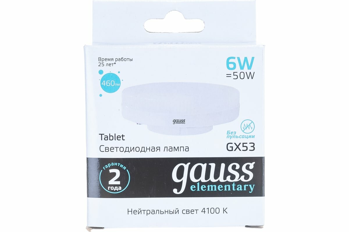 (2 шт)Лампа Gauss Elementary GX53 6W 460lm 4100K LED 1/10/100