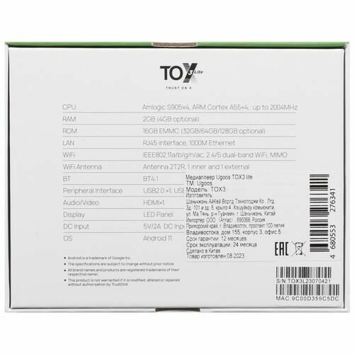 Купить Медиаплеер Ugoos TOX3 lite