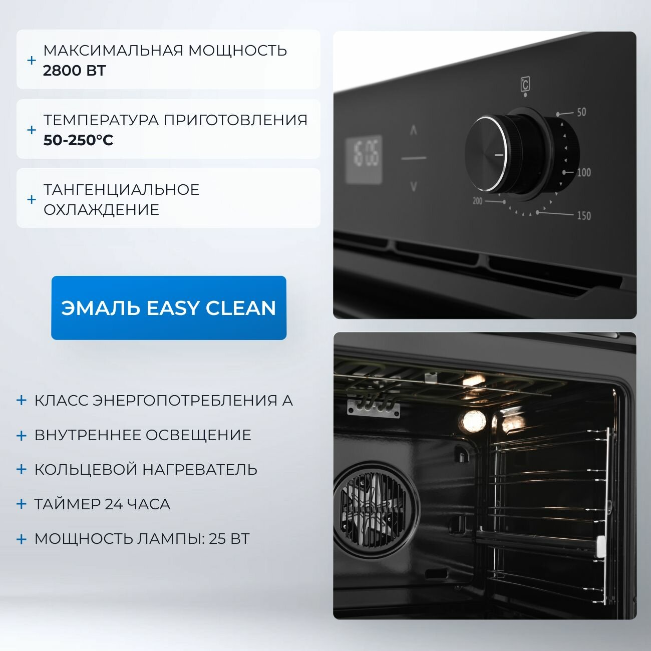 Духовой шкаф электрический ZUGEL ZOE602B, объем 75 л, 9 режимов работы, таймер, сенсорное управление, дисплей, черный