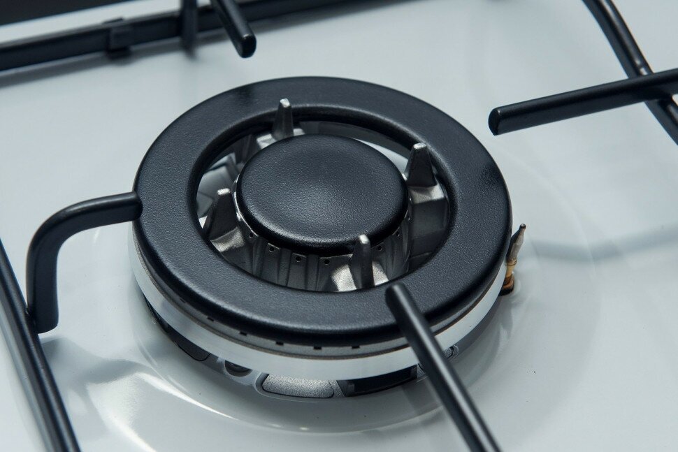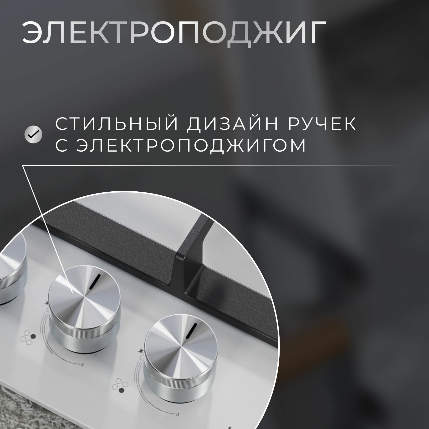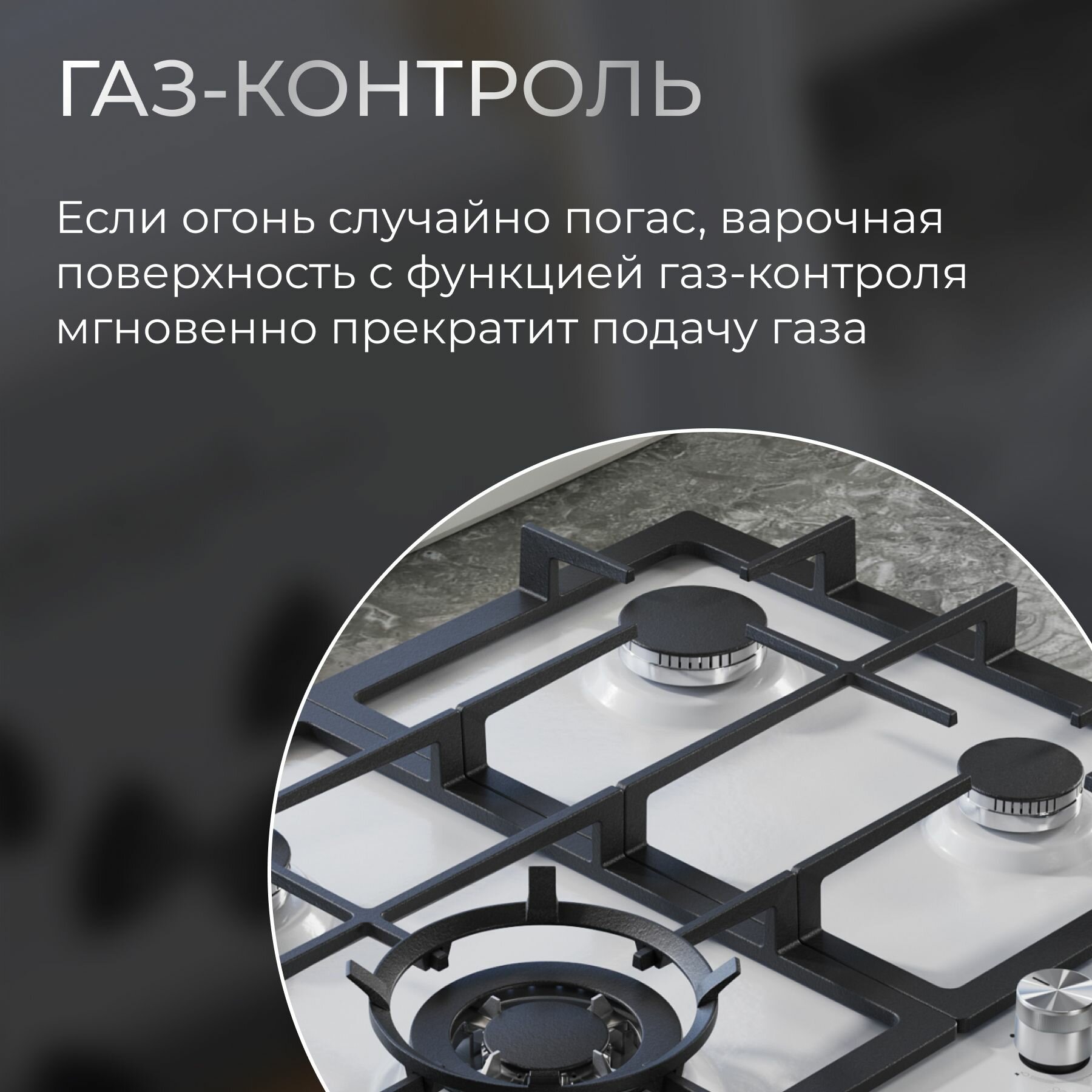 Газовая встраиваемая варочная панель 60 см KURO KHG 641 WH, газ-контроль, электроподжиг, WOK-конфорка, чугунные решетки, белая