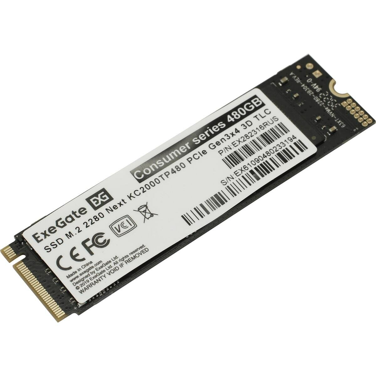 Накопитель SSD ExeGate EX282316RUS KC2000MNext 480 Gb M.2 2280 3D TLC (PCI-E x4)