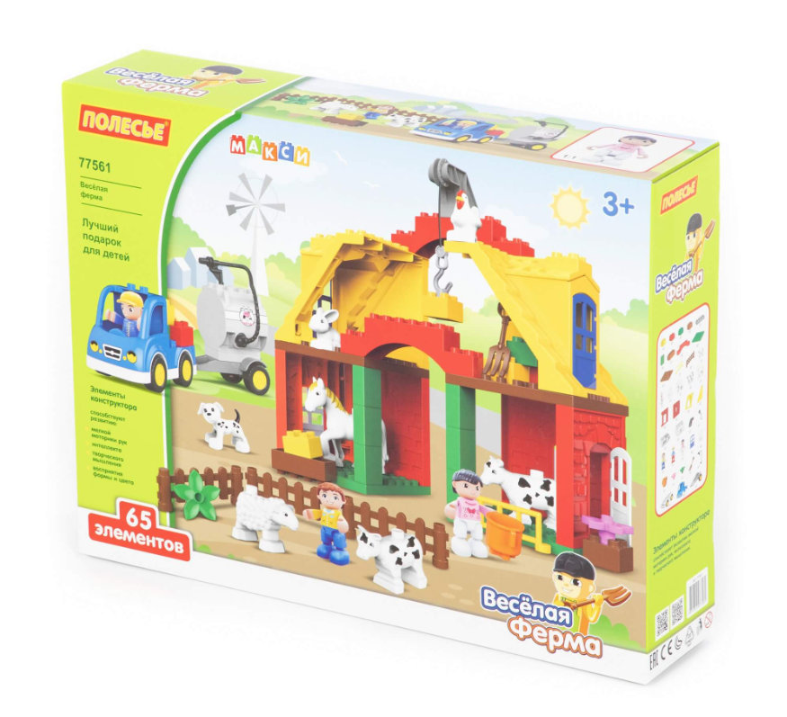 Конструктор Полесье Макси 77561 Весёлая ферма, 65 дет.