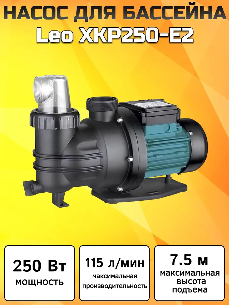 Насос для бассейна Leo XKP250-Е2 | Мощность 250 Вт. / Максимальная производительность 115 л/ мин. интересное: