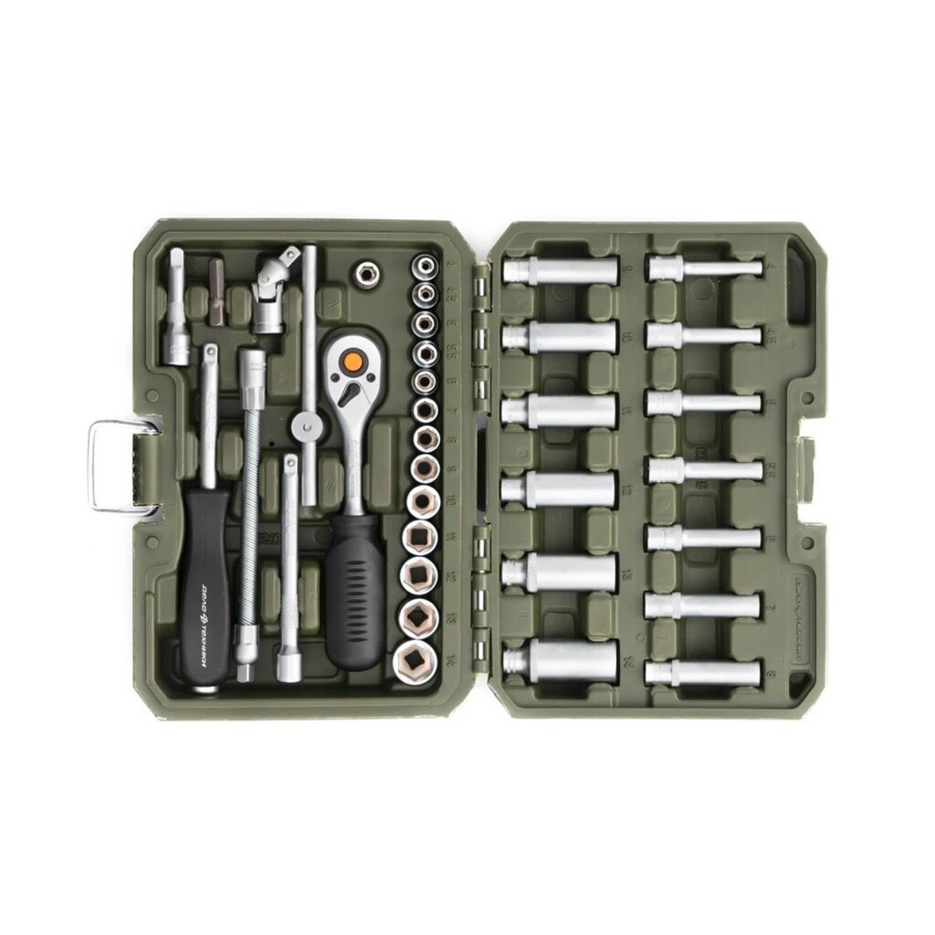 Набор торцевых головок Дело Техники 600735, 35 предм., зеленый/черный