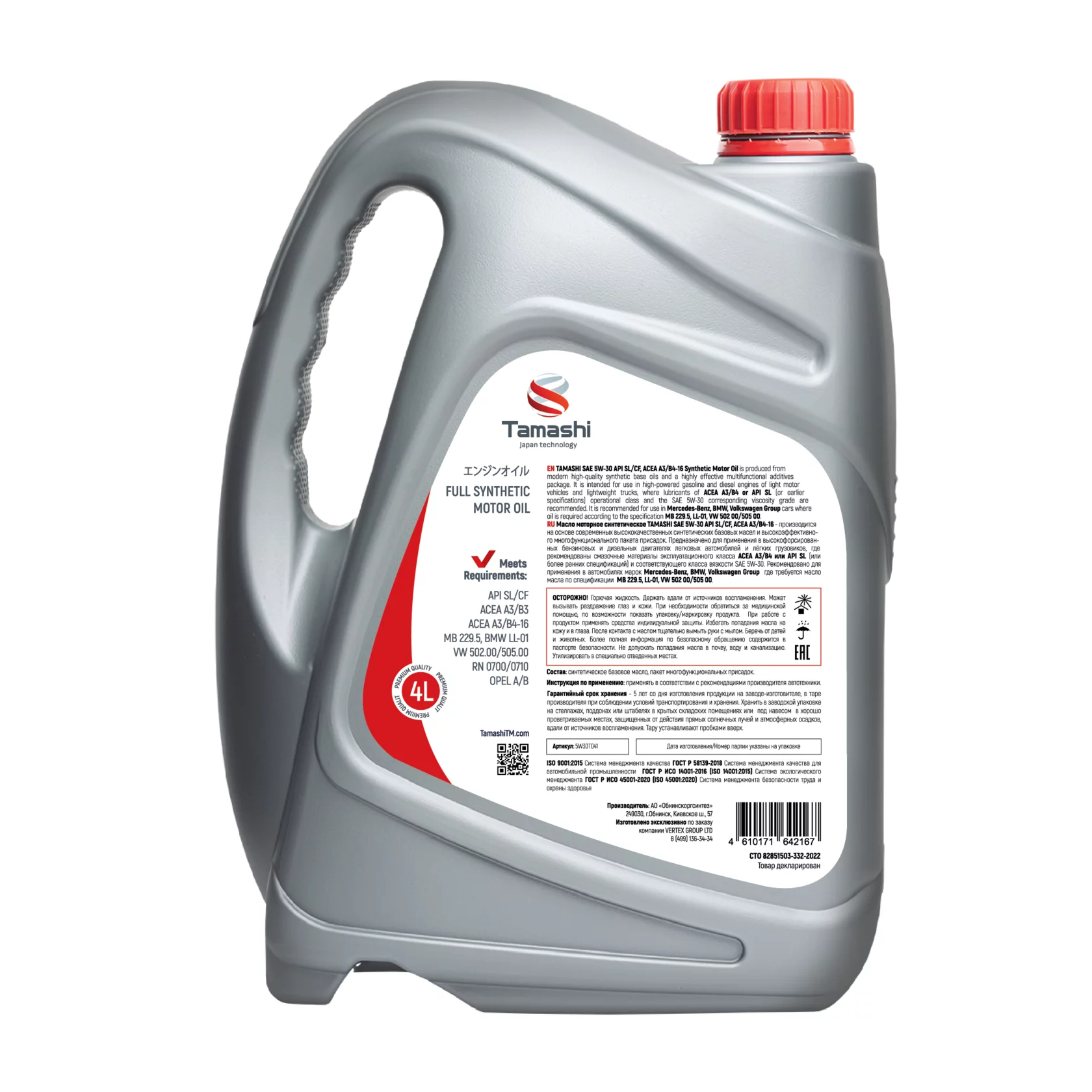Ниже Вы можете прочитать отзывы на TAMASHI : 5W30T044 Масло моторное синтетическое 4л 5W-30 API SL/CF A3/B4-16 (---, россия), ознакомится с подробными характеристиками, посмотреть интересные обзоры и фотографии на TAMASHI : 5W30T044 Масло моторное синтетическое 4л 5W-30 API SL/CF A3/B4-16 (---, россия).