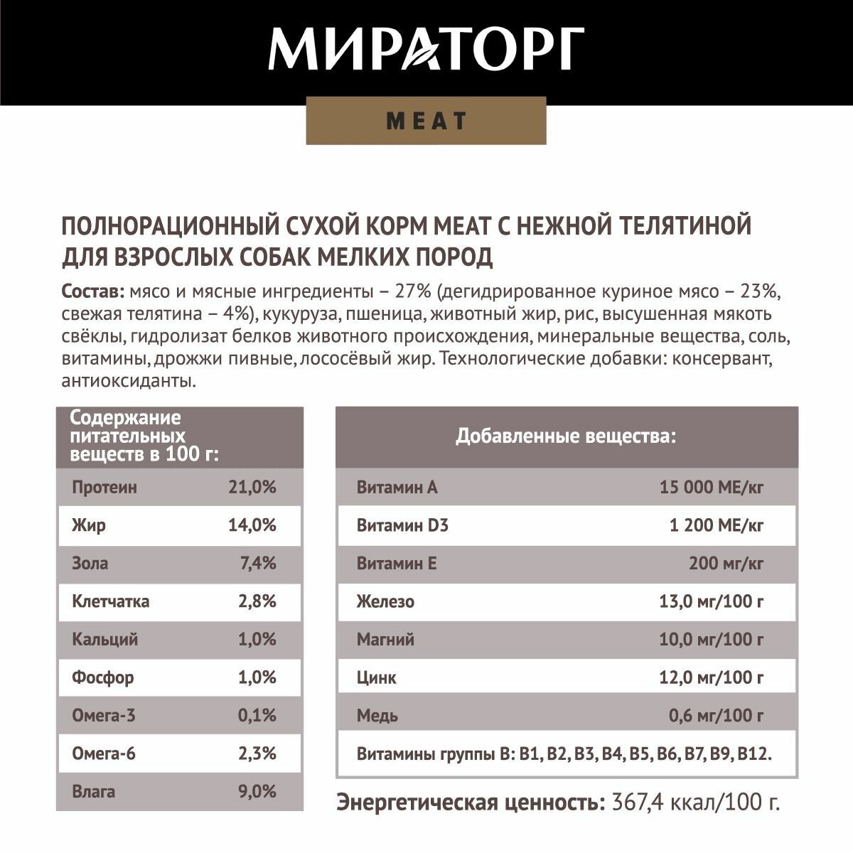 Купить Мираторг Полнорационный сухой корм с нежной телятиной для взрослых собак мелких пород, 1.1 кг.