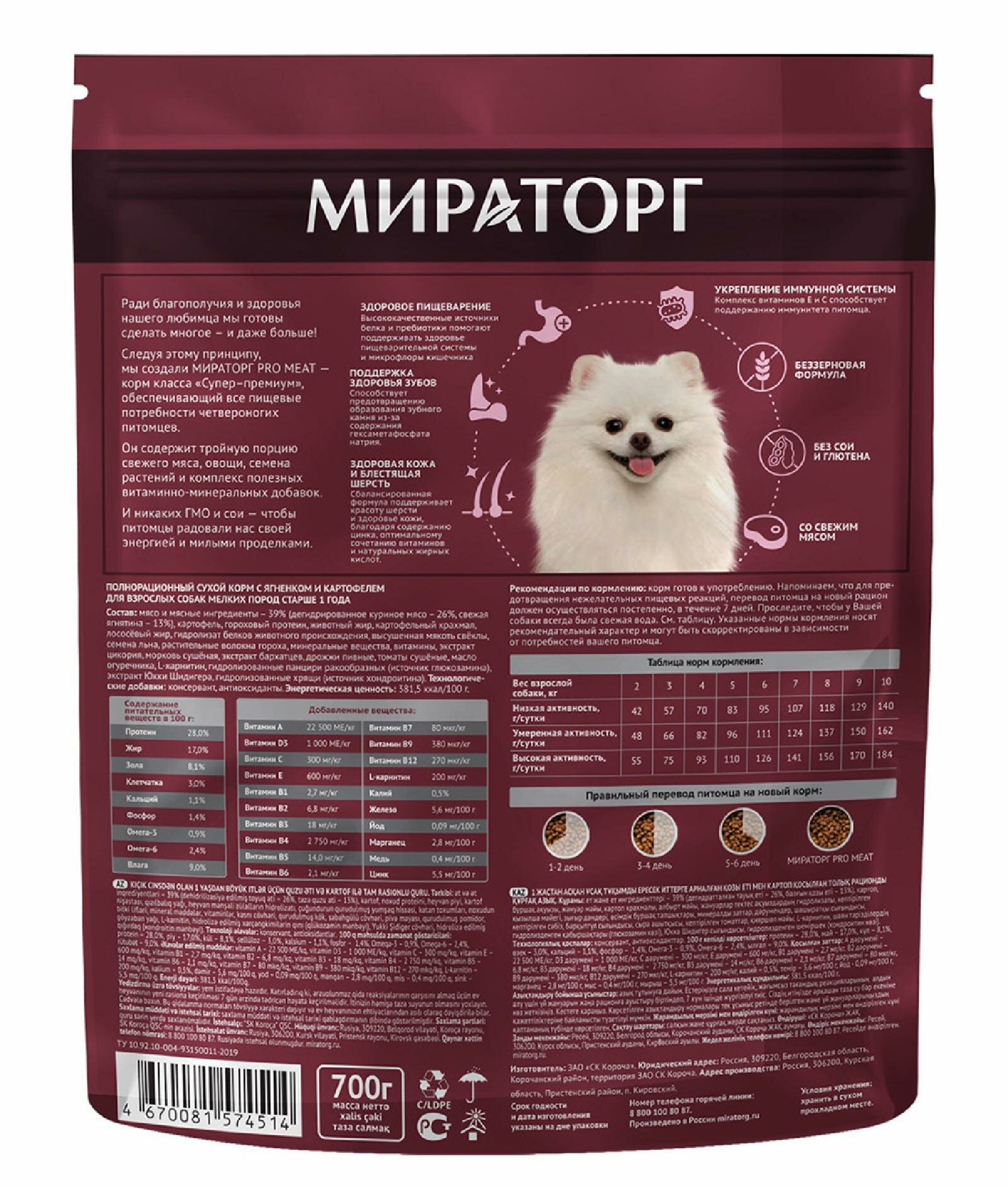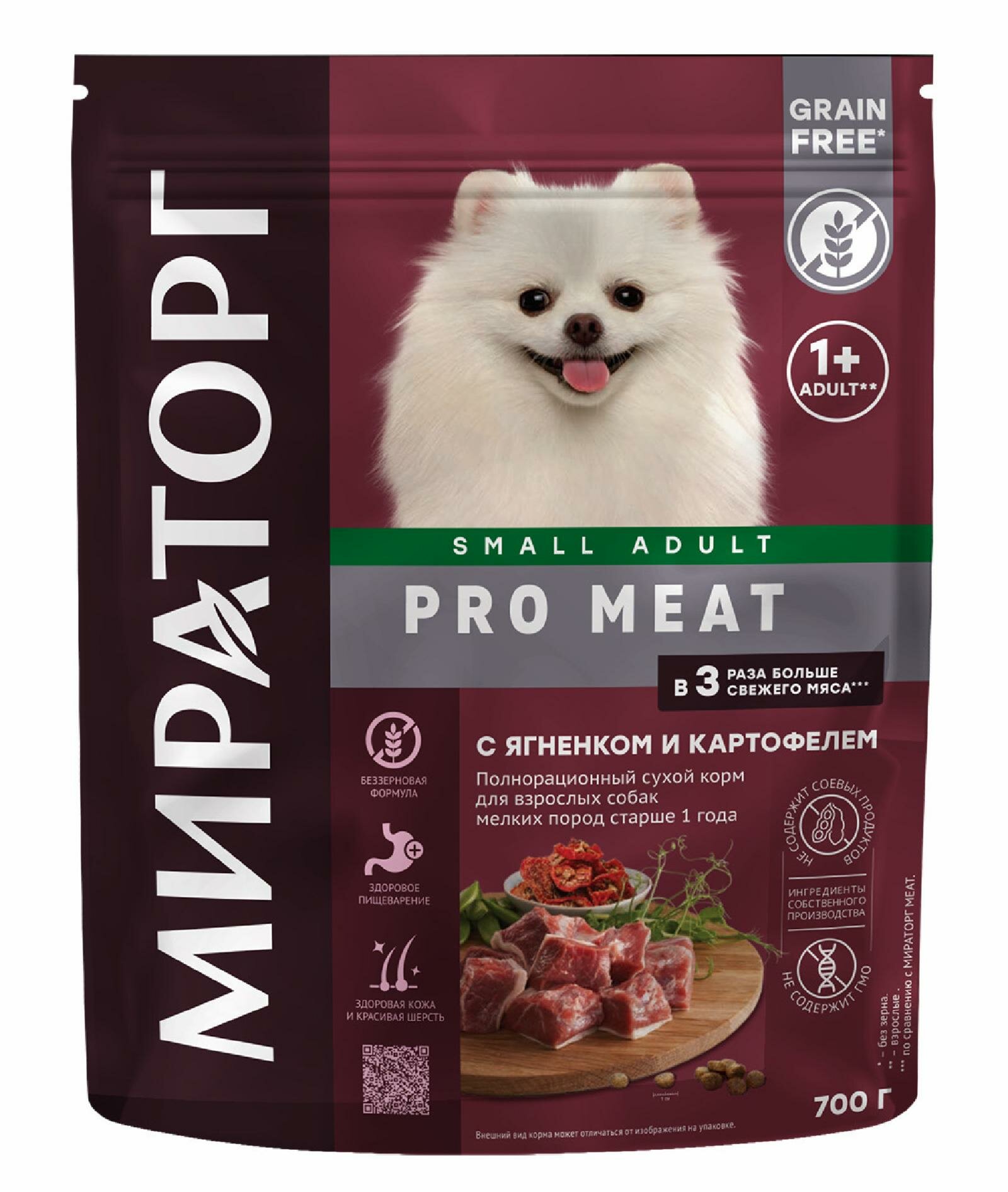 Мираторг Pro Meat 700 г сухой корм для взрослых собак мелких пород старше 1 года с ягненком и картофелем 1 шт
