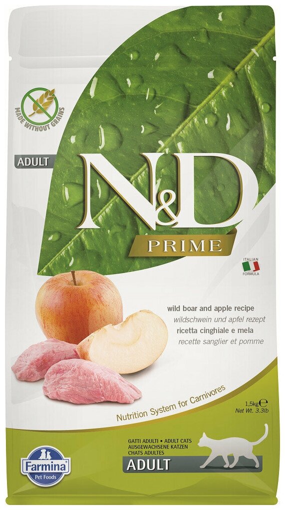 Farmina N&D Prime сухой корм для взрослых кошек, беззерновой, кабан и яблоко, 0,3 кг