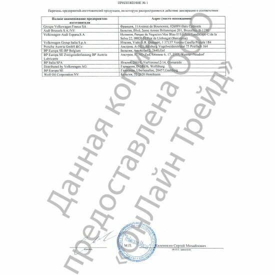 | Допуски OEM | VW 504.00 / VW 507.00 |