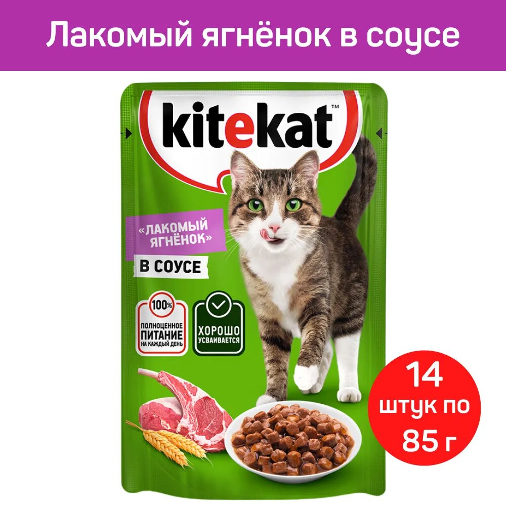 Корм влажный Kitekat соус для взрослых кошек с ягненком, 85г x 28 шт