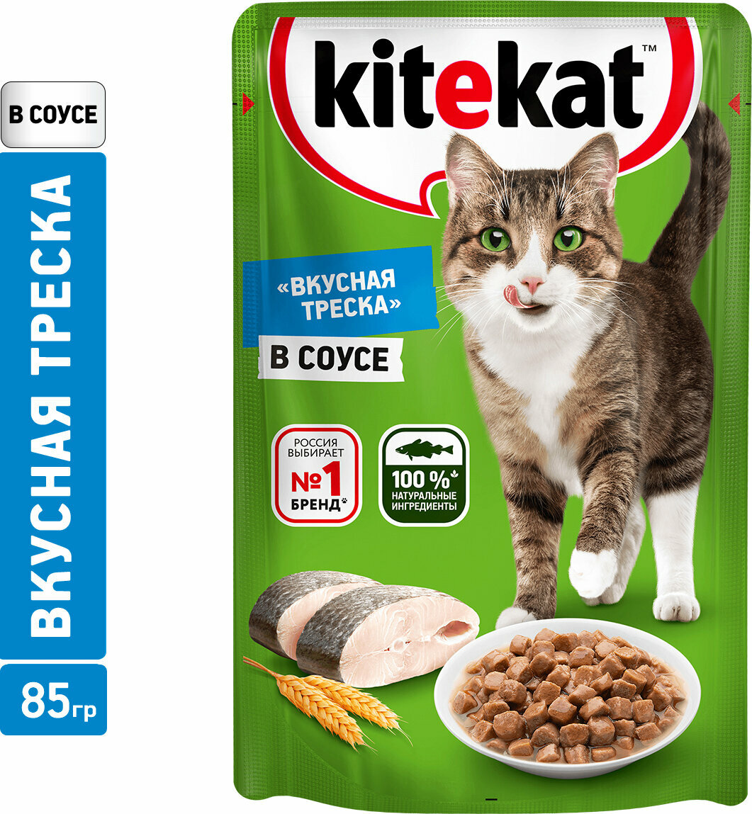 KITEKAT для взрослых кошек с вкусной треской в соусе(85 гр х 28 шт)