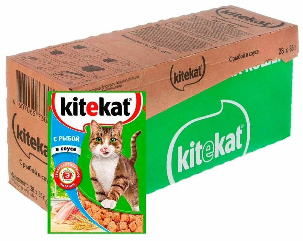 Влажный корм для кошек Kitekat, с сочными кусочками рыбы в соусе, 28 шт х 85 г