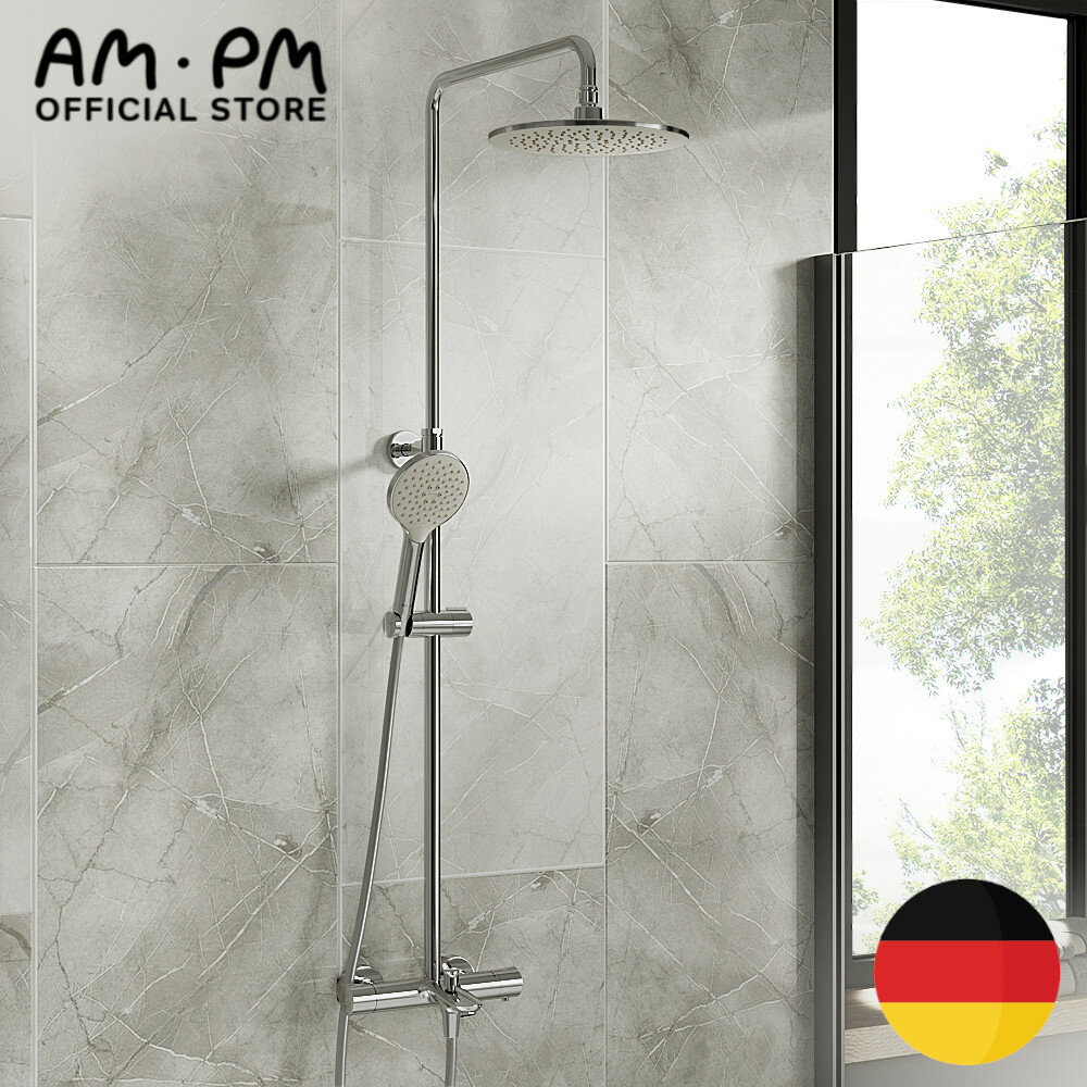 Купить Душевая система с тропическим душем AM.PM Chic, хром, термостат со стопором безопасности, с изливом, лейка d 120мм
