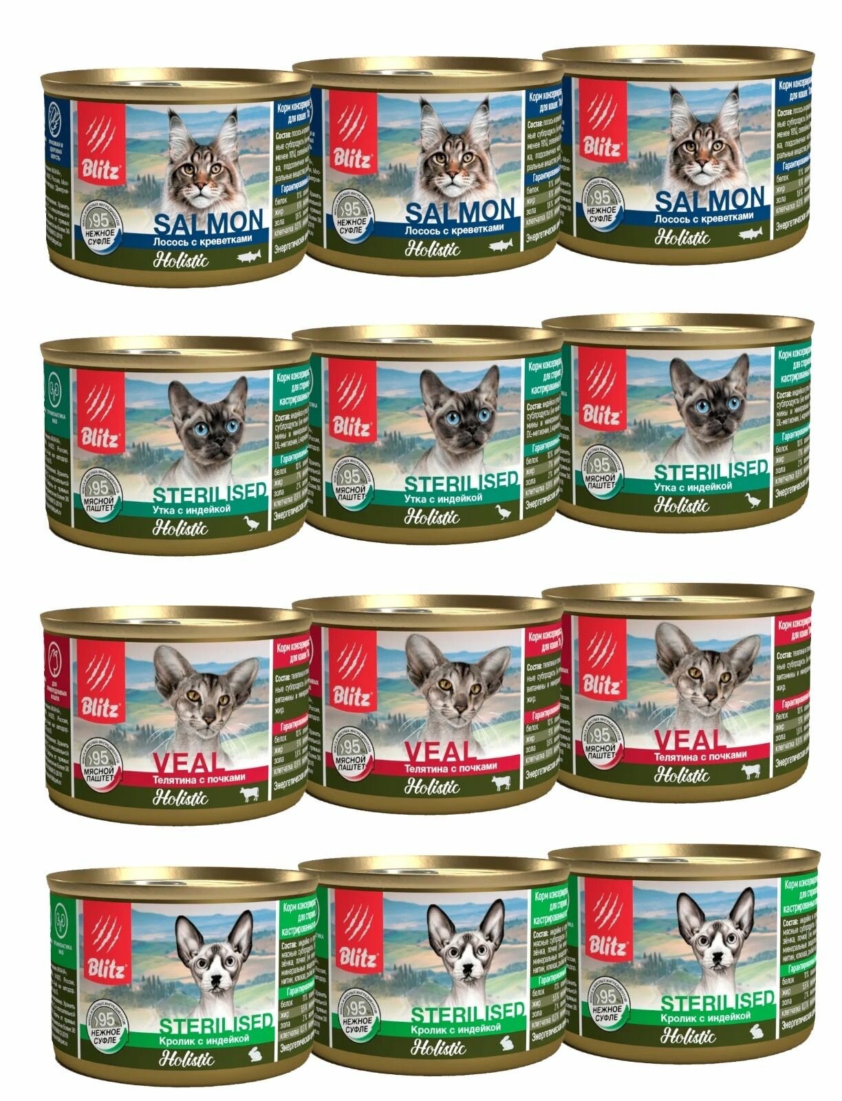 Купить Консервы BLITZ Holistic Adult Cats для взрослых кошек всех пород MIX вкусов12 шт 200гр.