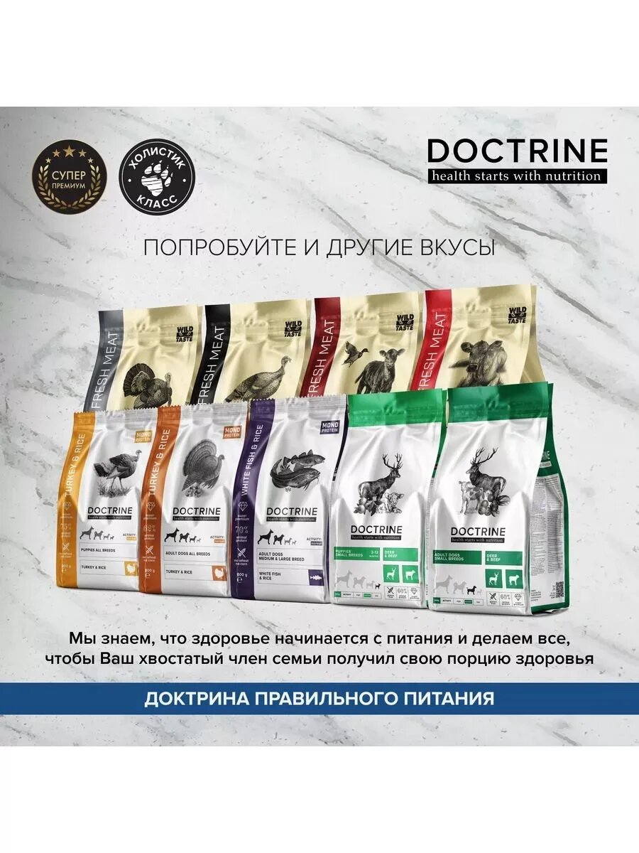 Сухой корм для собак мелких пород Беззерновой DOCTRINE с телятиной и олениной 800г / доктрин, доктрина