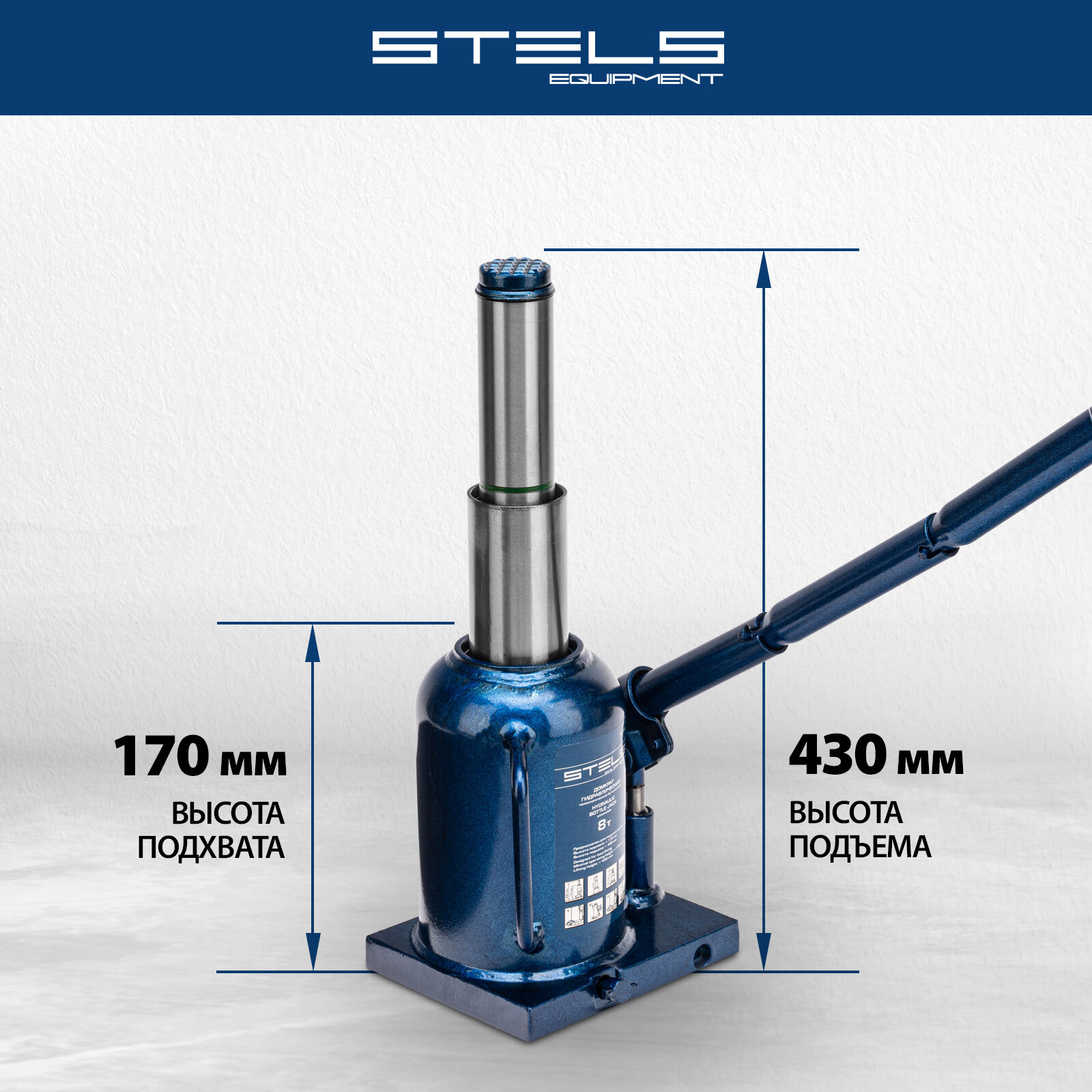 Домкрат гидравлический бутылочный телескопический, 8 т, h подъема 170–430 мм// Stels