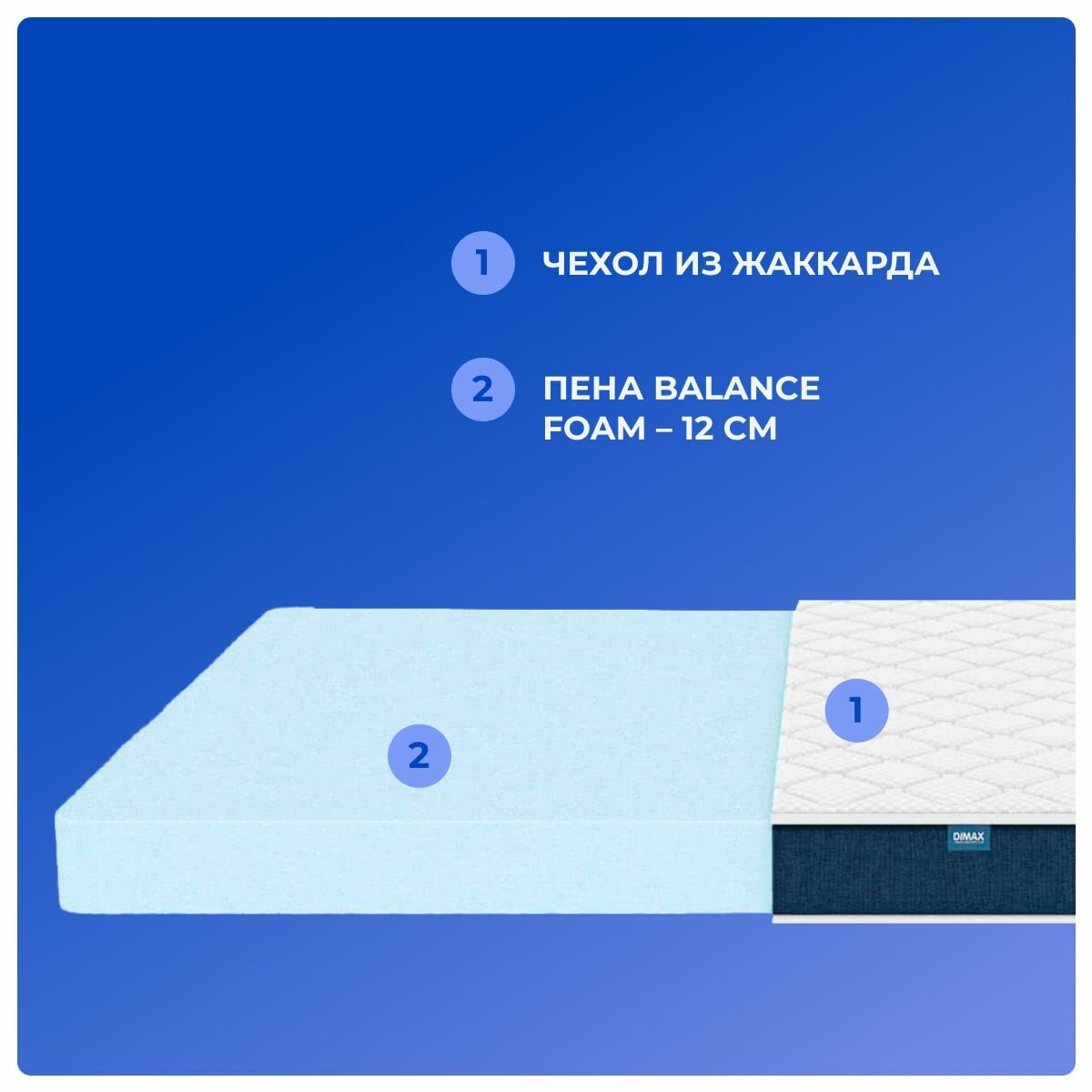 Матрас 95х186 Dimax PracticBasis 13, беспружинный, cредне-жёсткий, пенополиуретан, односпальный 186х95