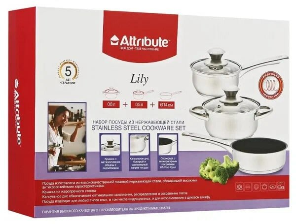Купить Набор посуды из нержавеющей стали LILY 5 предметов, ATTRIBUTE STEEL