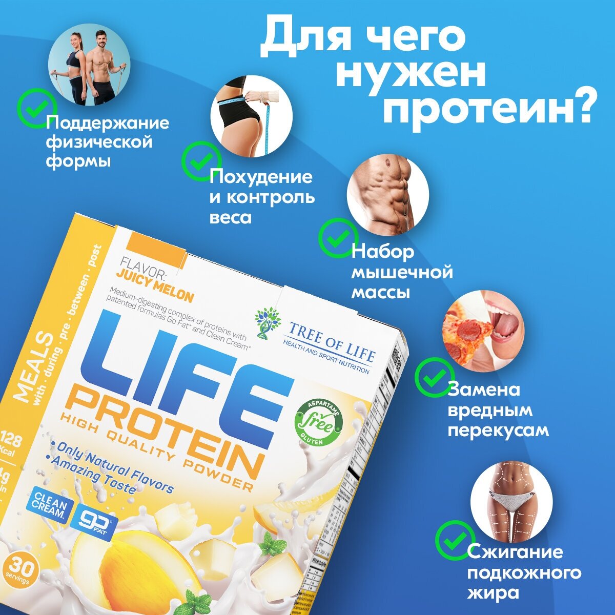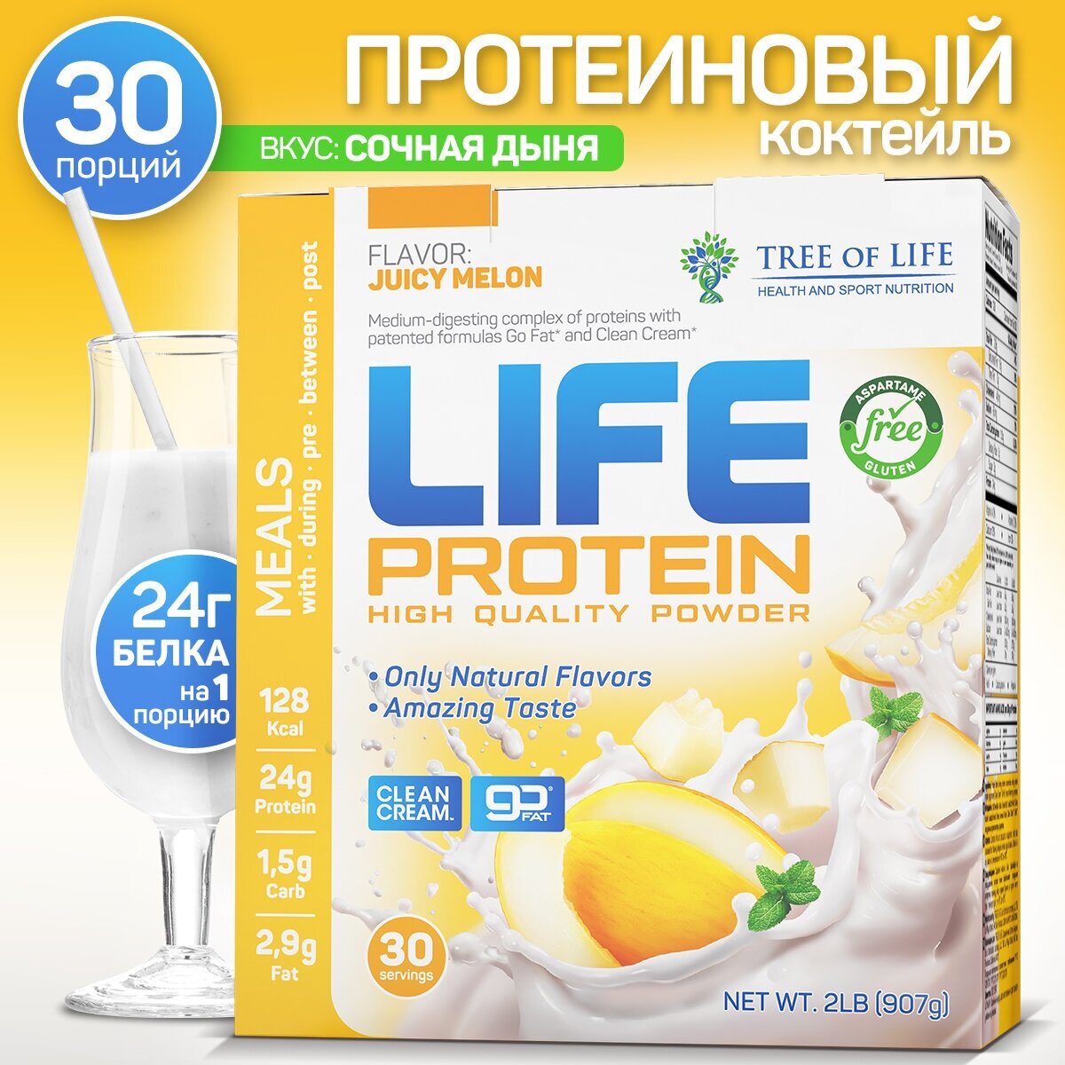 LIFE Protein 907 gr, 30 порции(й), дыня