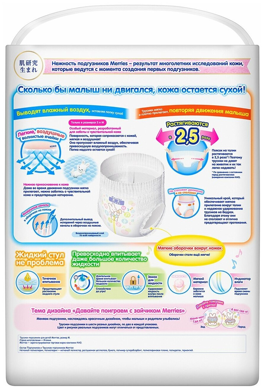 СохранитьТрусики-подгузники Merries для детей размер M / 3 (6-11 кг), 58 шт, дышащие интересное: