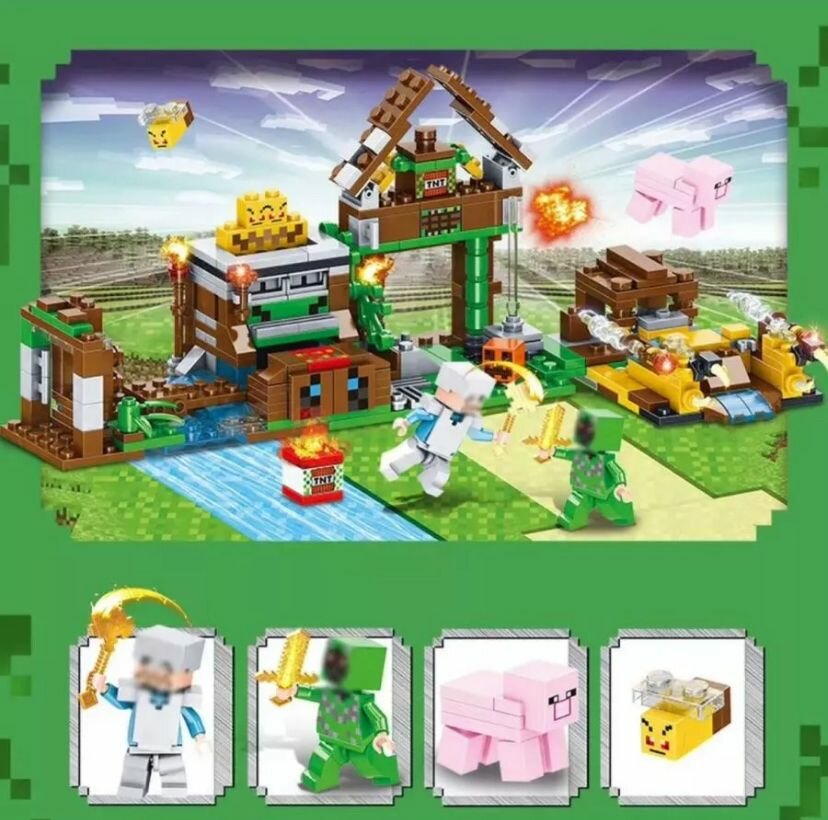 Конструктор LB539-1 Майнкрафт На ферме 4 шт в упаковке 28х5х18см