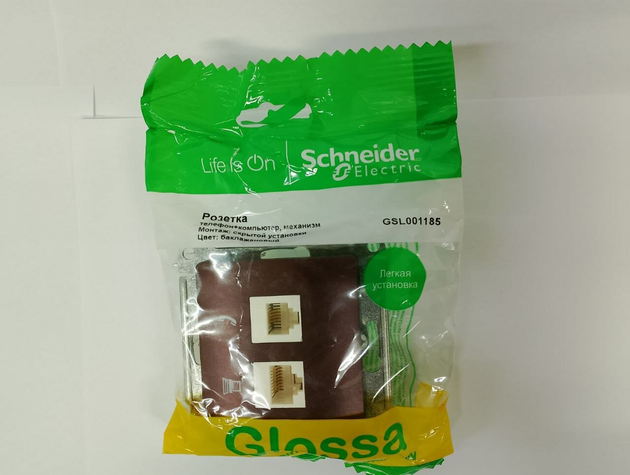 SE Glossa Баклажановый Розетка 2-ая RJ11+RJ45, кат.5E, SCHNEIDER ELECTRIC GSL001185 (1 шт.)