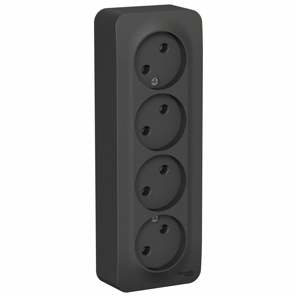 4шт. - Розетка BLANCA наружная четырехпостовая, без заземления, без шторок, с изолирующей пластиной, 16А, 250В, антрацит / Systeme Electric; арт. BLNRA000416; оригинал / - комплект 4шт