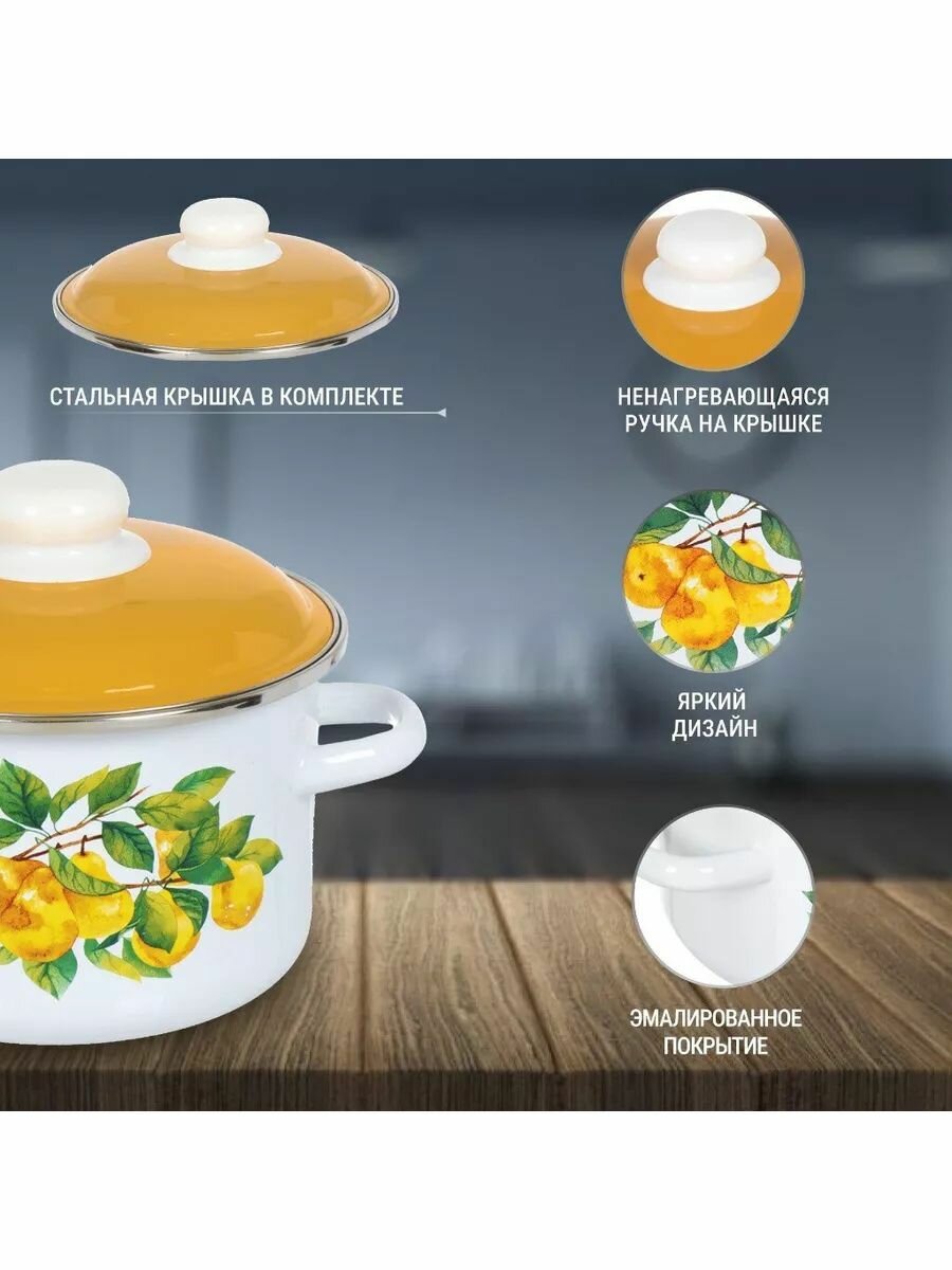Кастрюля СтальЭмаль Грушевый сад 2л эмалированная